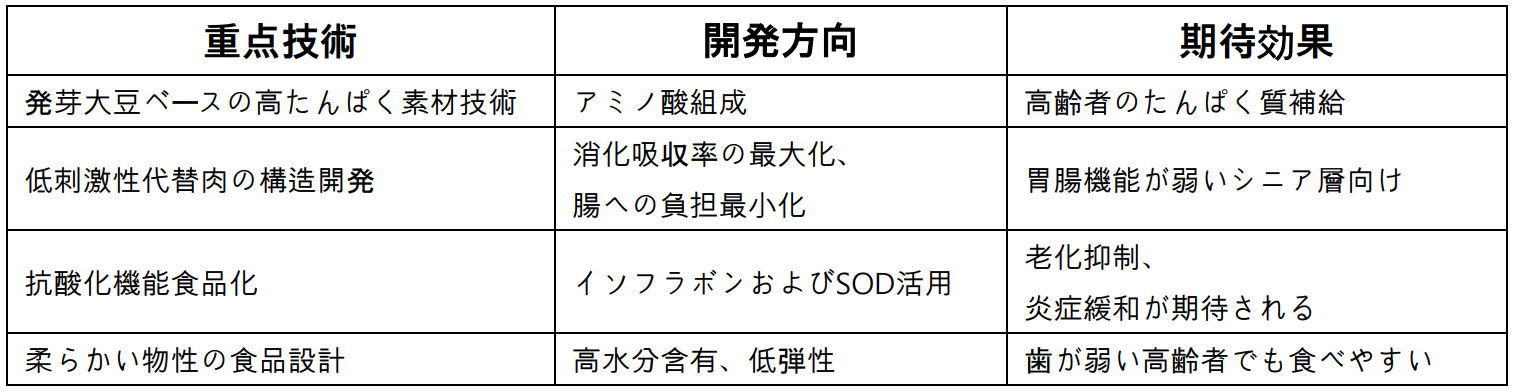 - ビタグローリーは、シルバー世代の健康な生活と豊かな食文化を支えるため、高機能な植物性代替肉の開発をリードしていきます。