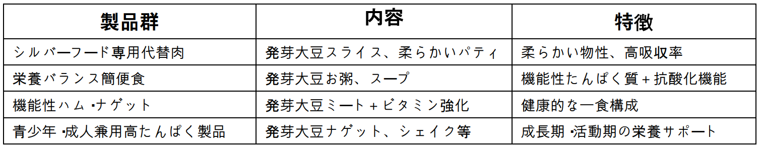 世界的に超高齢社会化が急速に進行しており、先進国では65歳以上の高齢者人口比率が20%を突破する見通しです。急増するシルバー世代は、従来の食品よりも「より柔らかく、より消化しやすく、より栄養吸収の高い食事」を求めています。ビタグローリーはこの流れに合わせ、発芽大豆の柔らかな食感と消化・吸収効率に着目し、「シルバー世代に優しい植物性たんぱく質食品」の開発に注力しています